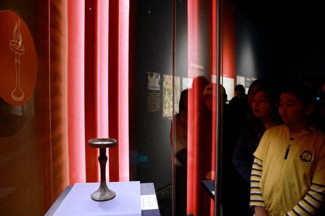 “李姬家”铭文青铜豆形灯。新京报记者 郭延冰 摄